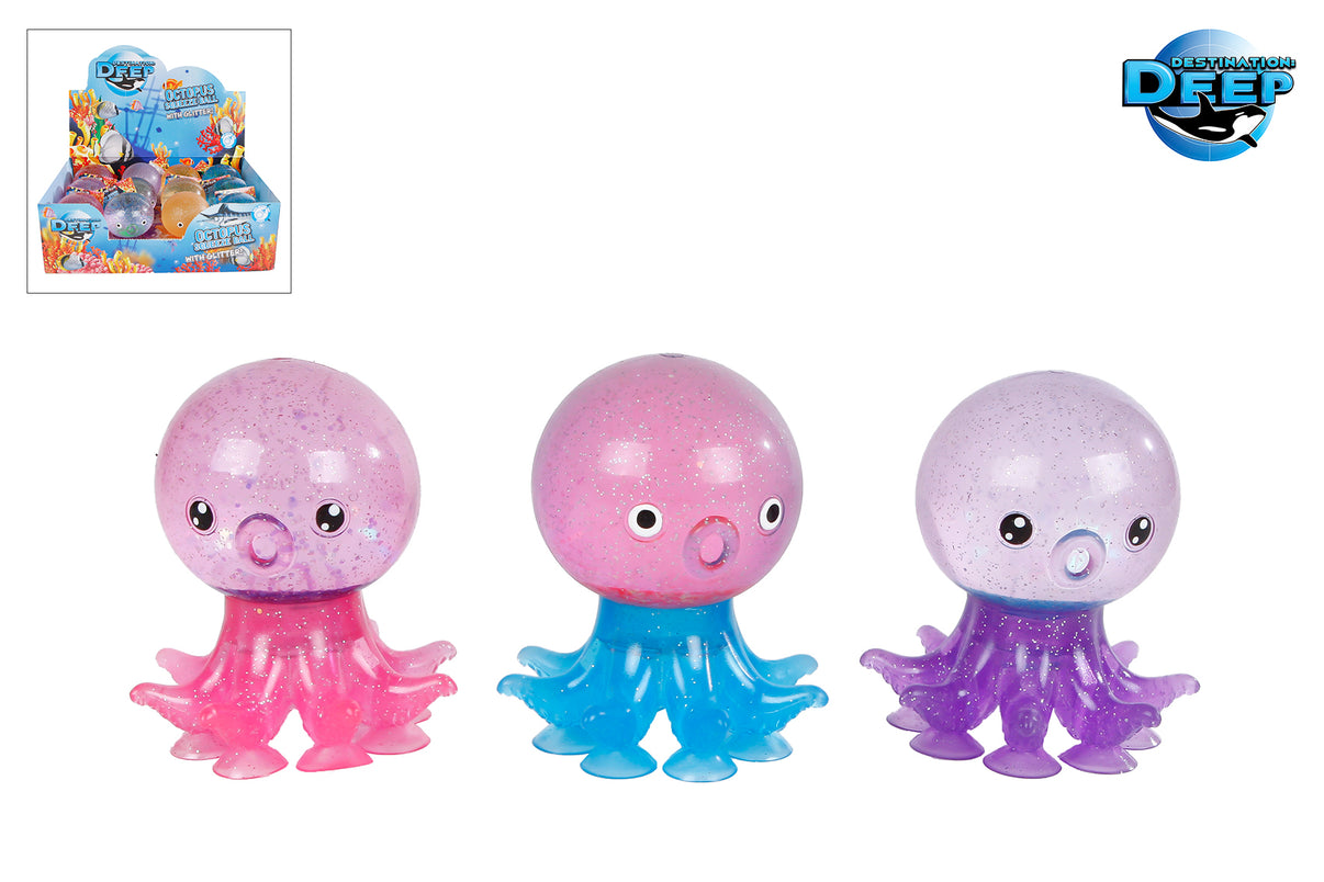 Octopus Squeeze Ball W/ Glitter & Suction Cups 4 asst. CDU
