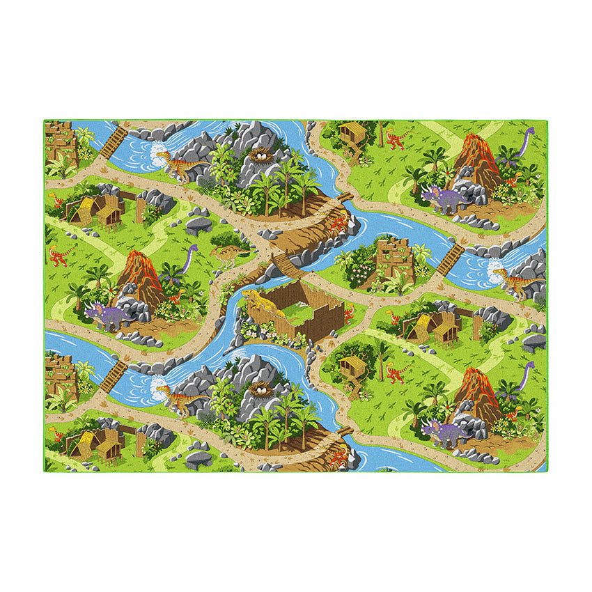 Træd ind i en forhistorisk verden med Rebel Roads Dino Legetæppe! Dette farverige og detaljerede tæppe bringer et spændende dinosaur-univers til live med vulkaner, floder, og eksotiske omgivelser – perfekt til at inspirere dit barns fantasi og eventyrlyst. Ideelt til børneværelset eller legerummet for at skabe en sjov og lærerig atmosfære. Overfladen på legetæppet er lavet af polyamid, mens undersiden er udstyret med skridsikker latex, hvilket sikrer, at tæppet bliver liggende stabilt under leg. Det er nemt at rengøre med en støvsuger og en fugtig klud. Giv dit barn et eventyr i deres eget værelse med Rebel Roads Dino Legetæppe! Mål: 140 x 200 cm. Kendetegn ved REBEL ROADS børnetæpper: • Glade farver og mønstre, der opmuntrer til leg; • Holdbarhed takket være løkkevævning og nylongarn; • Skridsikker bund lavet af latex; • Nem daglig vedligeholdelse, lav luv gør støvsugning lettere og forstyrrer ikke rengøringsrobotter; • Har OEKO-TEX-certifikat, der bekræfter, at produktet er sikkert for både brugere og miljøet; • Egnet til gulvvarme. • Produceret i Europa