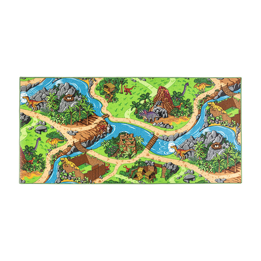 Træd ind i en forhistorisk verden med Rebel Roads Dino Legetæppe! Dette farverige og detaljerede tæppe bringer et spændende dinosaur-univers til live med vulkaner, floder, og eksotiske omgivelser – perfekt til at inspirere dit barns fantasi og eventyrlyst. Ideelt til børneværelset eller legerummet for at skabe en sjov og lærerig atmosfære. Overfladen på legetæppet er lavet af polyamid, mens undersiden er udstyret med skridsikker latex, hvilket sikrer, at tæppet bliver liggende stabilt under leg. Det er nemt at rengøre med en støvsuger og en fugtig klud. Giv dit barn et eventyr i deres eget værelse med Rebel Roads Dino Legetæppe! Mål: 95 x 200 cm. Kendetegn ved REBEL ROADS børnetæpper: • Glade farver og mønstre, der opmuntrer til leg; • Holdbarhed takket være løkkevævning og nylongarn; • Skridsikker bund lavet af latex; • Nem daglig vedligeholdelse, lav luv gør støvsugning lettere og forstyrrer ikke rengøringsrobotter; • Har OEKO-TEX-certifikat, der bekræfter, at produktet er sikkert for både brugere og miljøet; • Egnet til gulvvarme. • Produceret i Europa