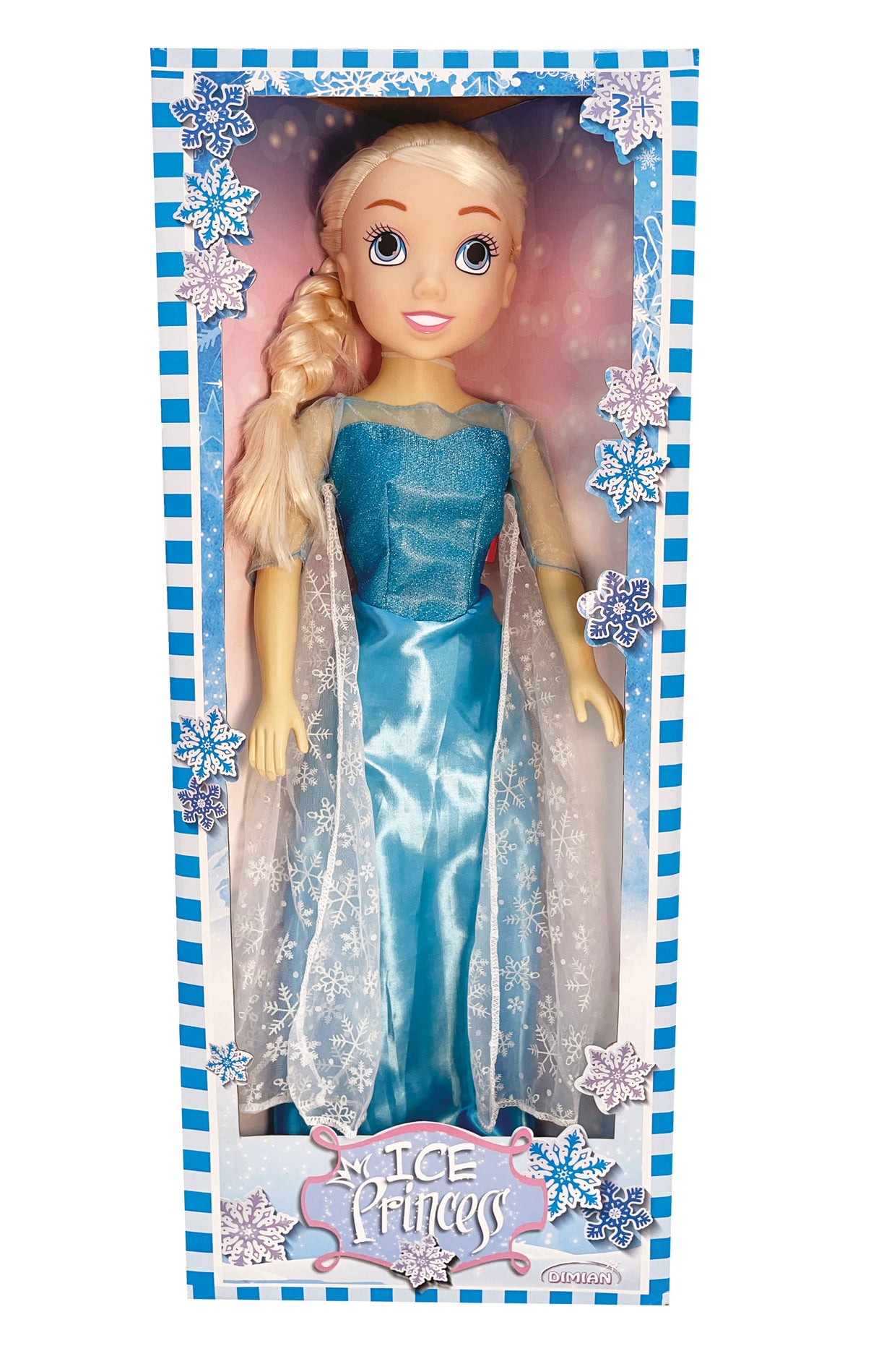 Isprinsesse Dukke – 80 cm magisk vintermagi Træd ind i en fortryllet vinterverden med denne imponerende Isprinsesse-dukke, der står hele 80 cm høj. Med sin glitrende blå kjole og smukke flettede hår er hun klar til at blive din nye bedste veninde og stjernen i ethvert prinsesseeventyr. Hendes store størrelse gør hende perfekt både til leg og som udstillingsdukke, og hendes detaljerede kjole, prydet med snefnugmønstre og glitrende stof, vil uden tvivl fange ethvert barns fantasi.