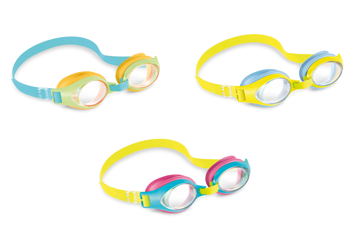 Hjælp børnene til en god oplevelse i vandet med disse svømmebriller. Brillerne har UV-beskyttelse og en justerbar strop, så den kan tilpasses børn mellem 3 og 8 år. Fås i 3 forskellige farver