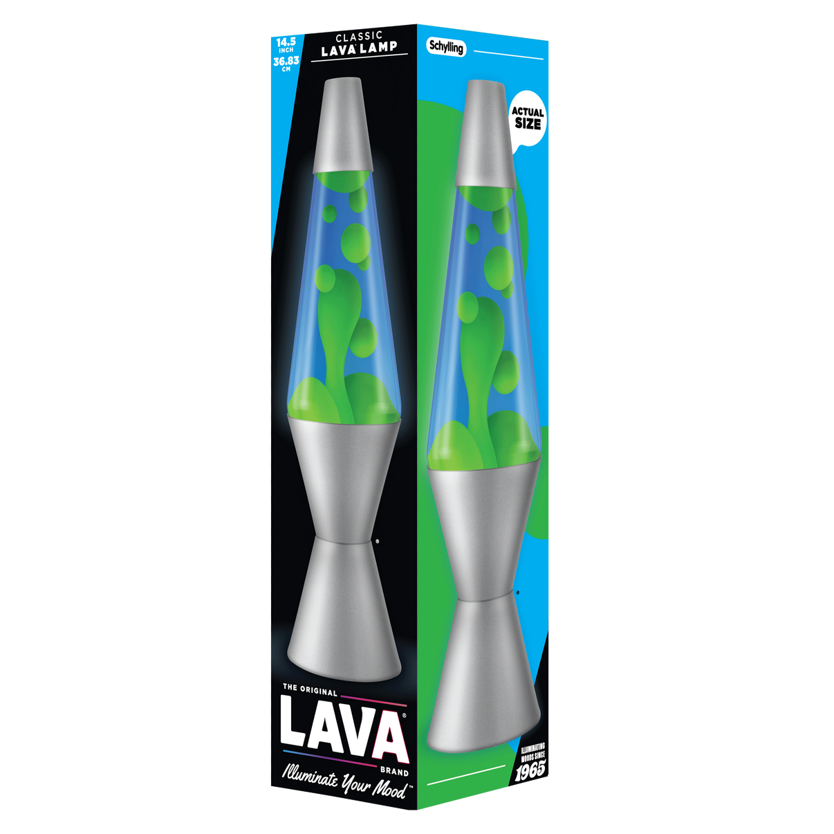 Siden 1965 har den originale Lava® lampe skabt en stemningsfuld og magisk oplevelse for alle aldre. Uanset om du vil tilføje en unik detalje til din indretning eller skabe en afslappende stemning, er denne ikoniske lampe det perfekte valg. Oplev den fascinerende bevægelse, når den grønne voks langsomt bobler op gennem den beroligende lyseblå væske og daler ned igen, skabende en afslappende atmosfære. Lampen er nem at bruge – tænd den, og efter 2-3 timer vil voksen flyde frit. For optimal ydeevne anbefales det at lade lampen køre højst 10 timer ad gangen og lad den køle helt af før håndtering. Med en højde på 37 cm er denne klassiske Lava® lampe den perfekte dekoration til værelset, skrivebordet, eller reolen. Den er fremstillet af materialer i høj kvalitet med sikkerheden i fokus og leveres med 1 x 25W G9 LED-pære.