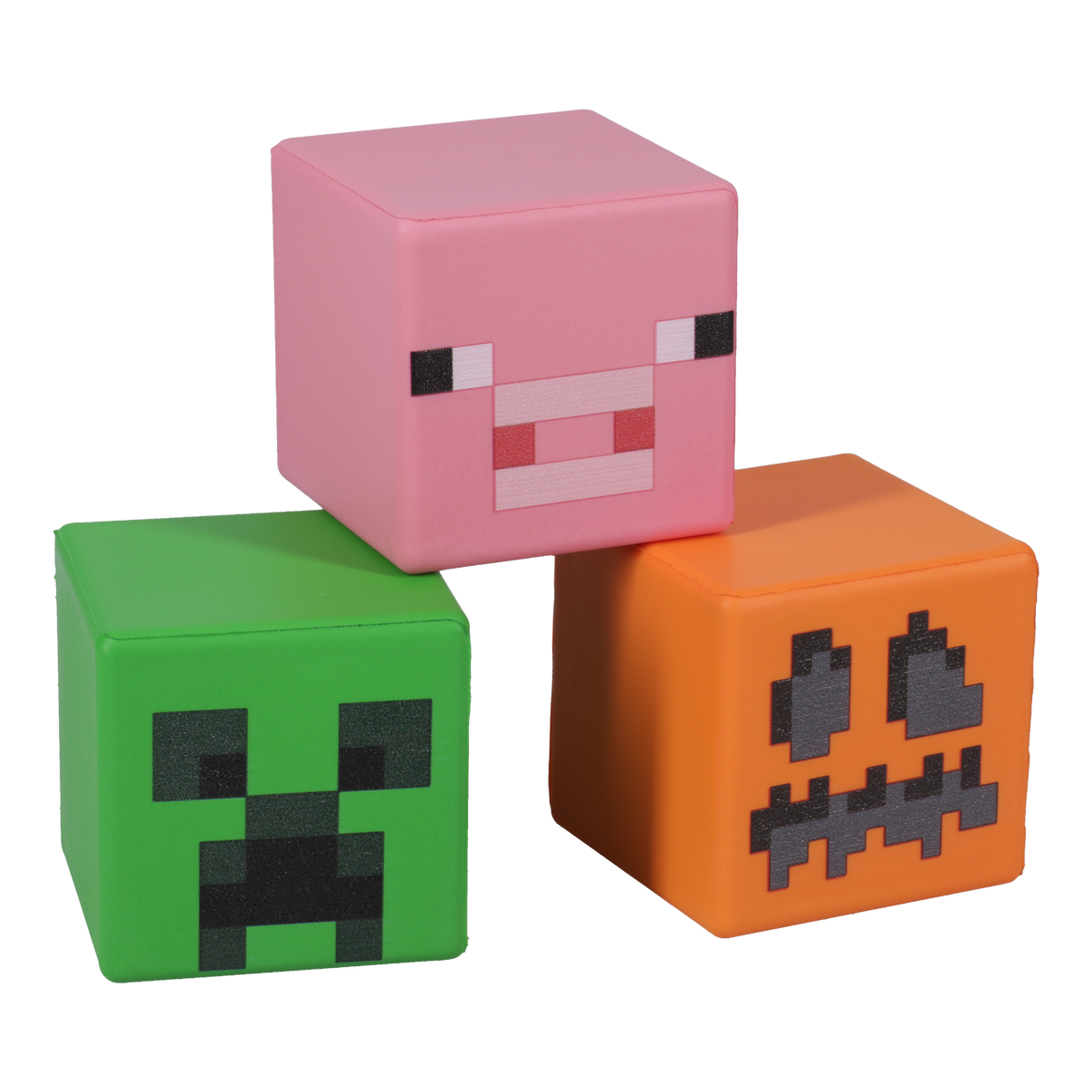 Tag en pause fra din næste intense gaming-session med en af disse Minecraft Stress Blocks. De 6 cm (2.4") brede stressbolde i skumterning kommer i tre forskellige designs. Vælg mellem en Jack O'Lantern. en Pig eller den ikoniske Creeper. Du kan endda samle alle tre og stable dem ved siden af din skærm! Minecraft Stress Blocks er perfekte til reel spil.