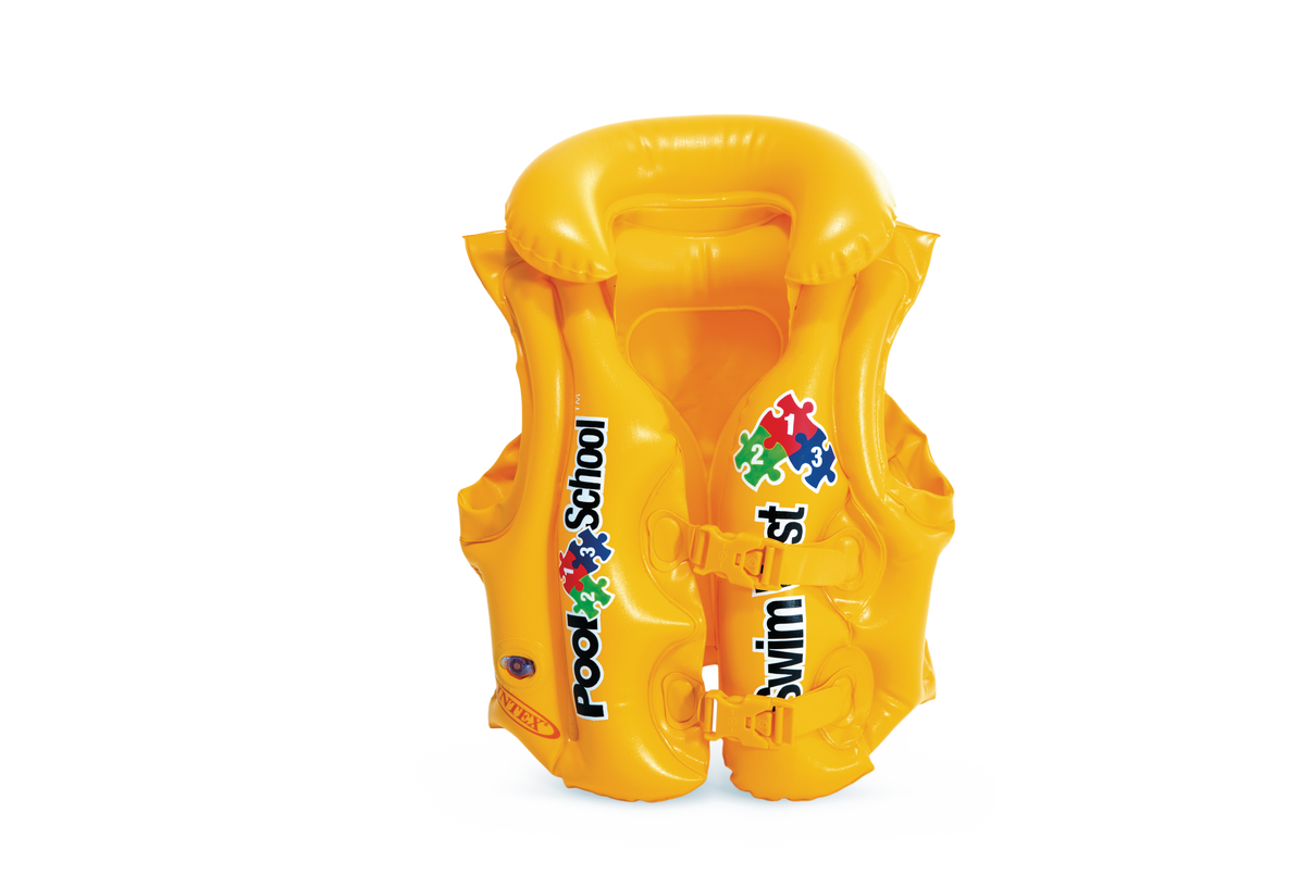 Det er vigtigt at være sikker og tryg, når man prøver kræfter med vandet for første gang! Med Intex luksus redningsvest kan børn pjaske uforstyrret rundt med den lette vest, der sørger for at holde dem oppe. Vestens spænder sørger for, at den sidder godt fast omkring barnet. Vesten måler 50 x 47 cm og vægtgrænsen er fra 18-30 kg. Fra 3-6 år – dog under opsyn af voksen.